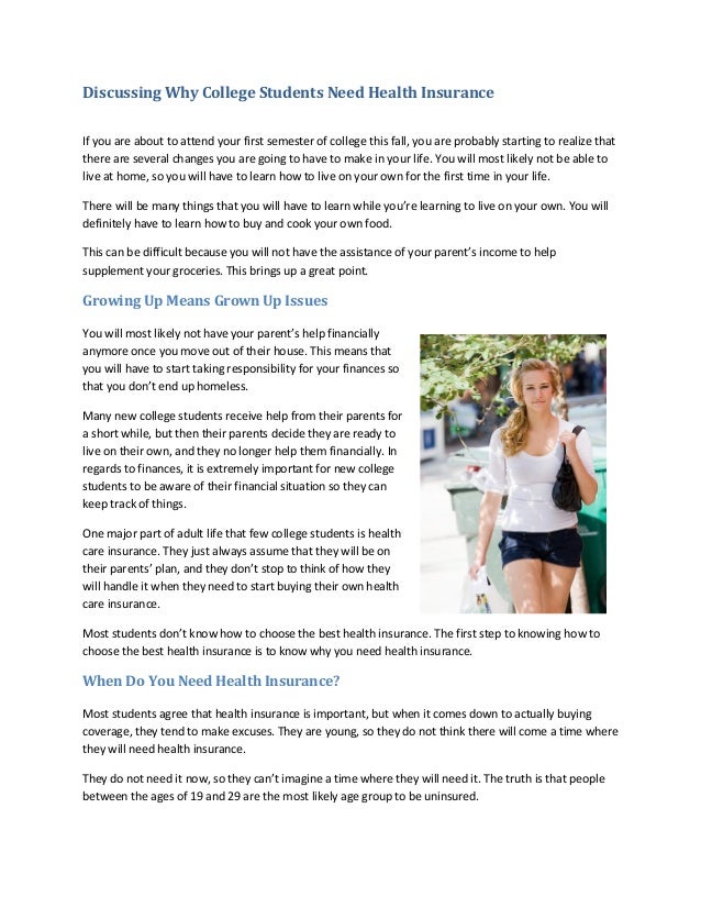 Many colleges offer student health insurance plan, though the coverage network may be limited compared traditional health insurance. #college #internationalstudent #student#wellness #healthy#happytime #halloween. College students are typically required to have health insurance. I believe that college students should be rewarded free health insurance because aside from academics, students can't succeed in college without for many students it's difficult enough just to afford tuition, so free health insurance would greatly benefit those students and many others who. Even if you have access to a student health plan, you can apply for coverage (or stay covered) through the health insurance marketplace® instead.